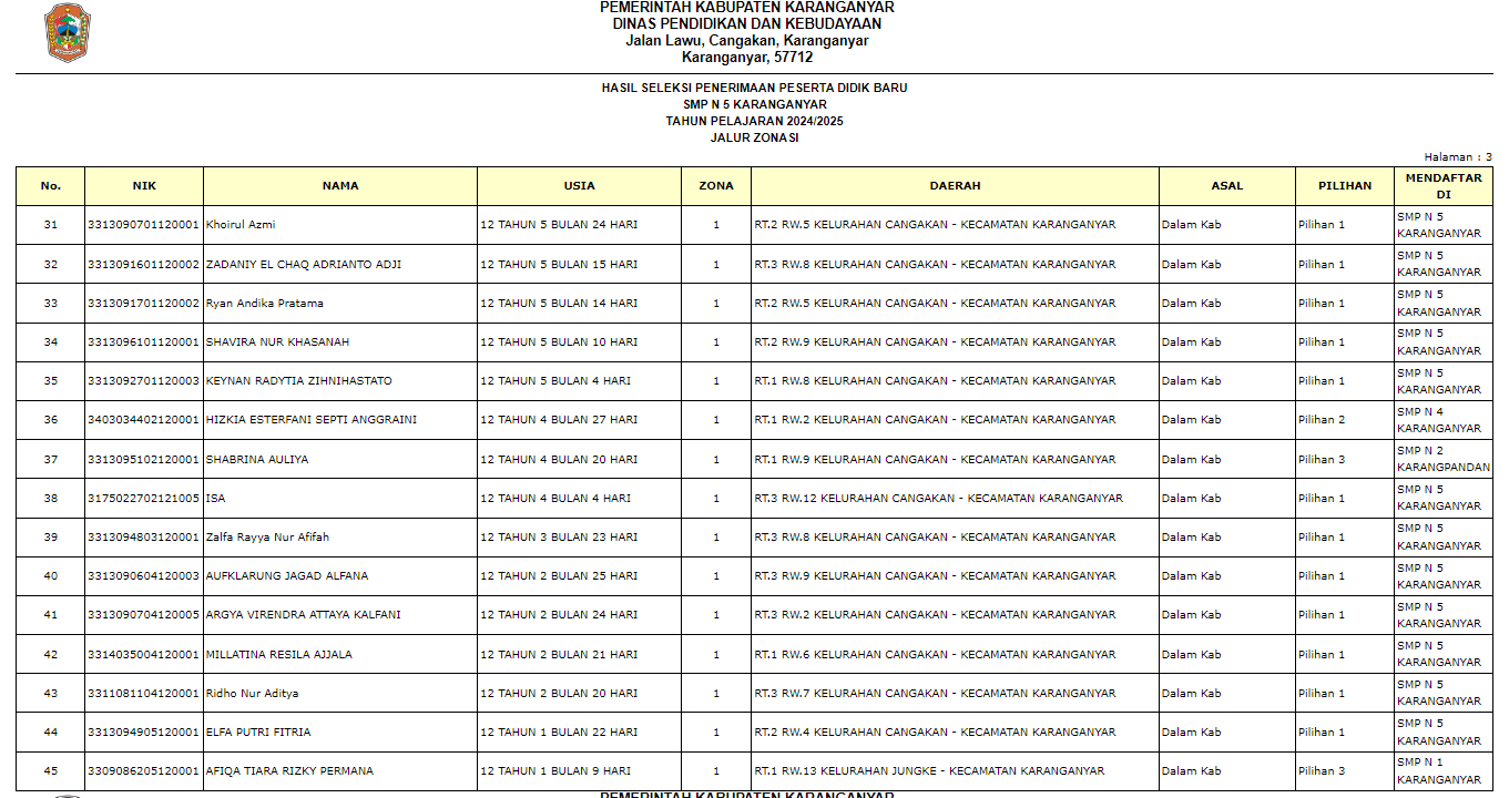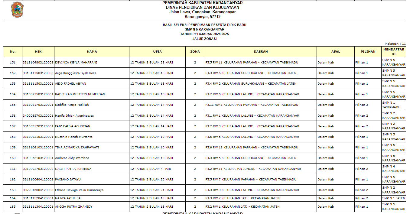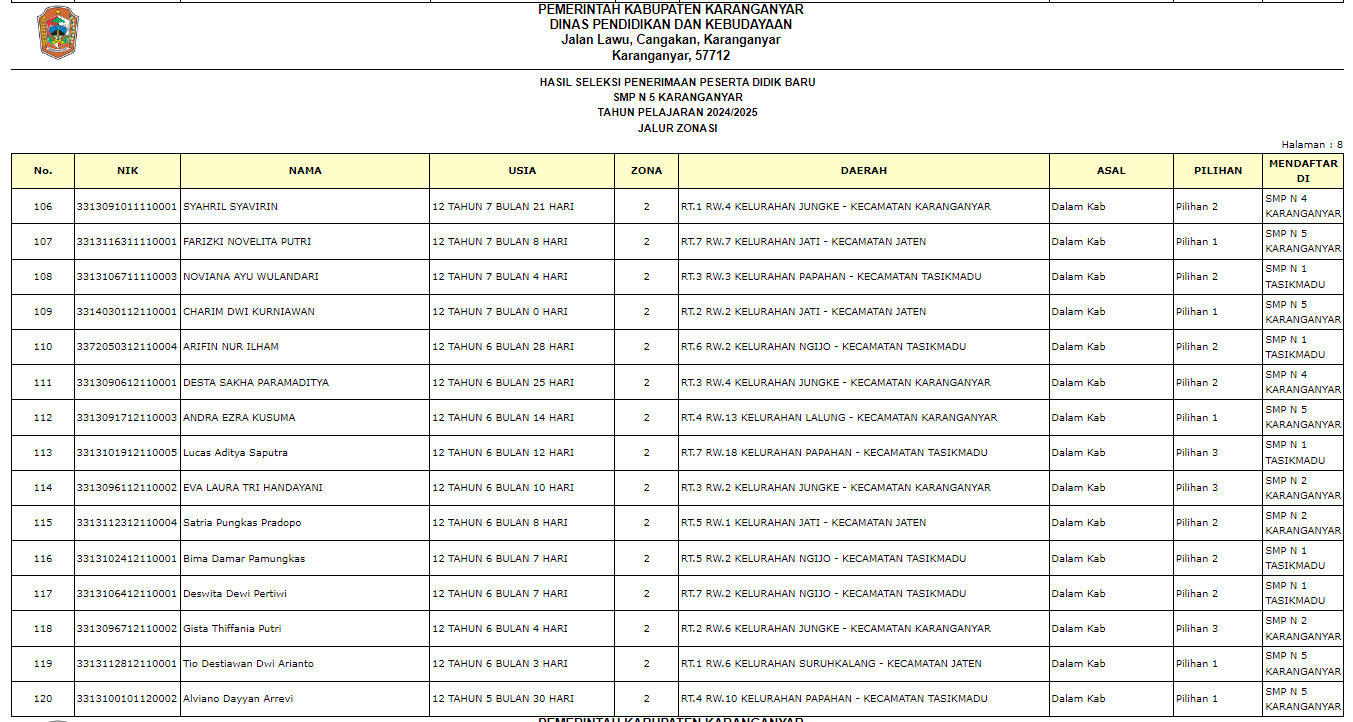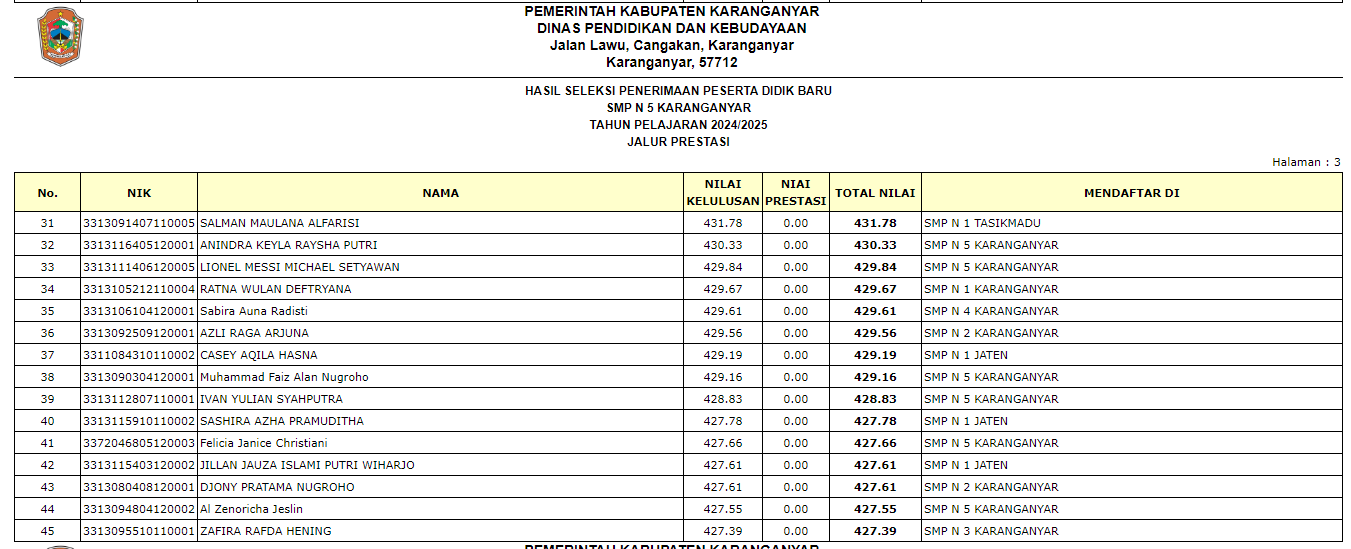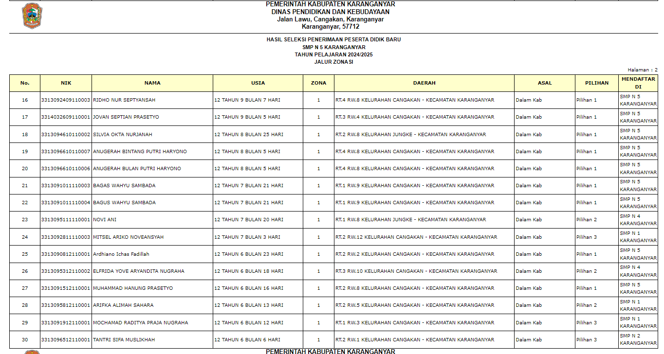 Pengumuman Penerimaan Peserta Didik Baru (PPDB) di SMP Negeri 5 Karanganyar Tahun Ajaran 2024/2025 melalui Jalur Zonasi, Jalur Prestasi, Jalur Perpindahan Tugas Orang Tua, dan Jalur Afirmasi.