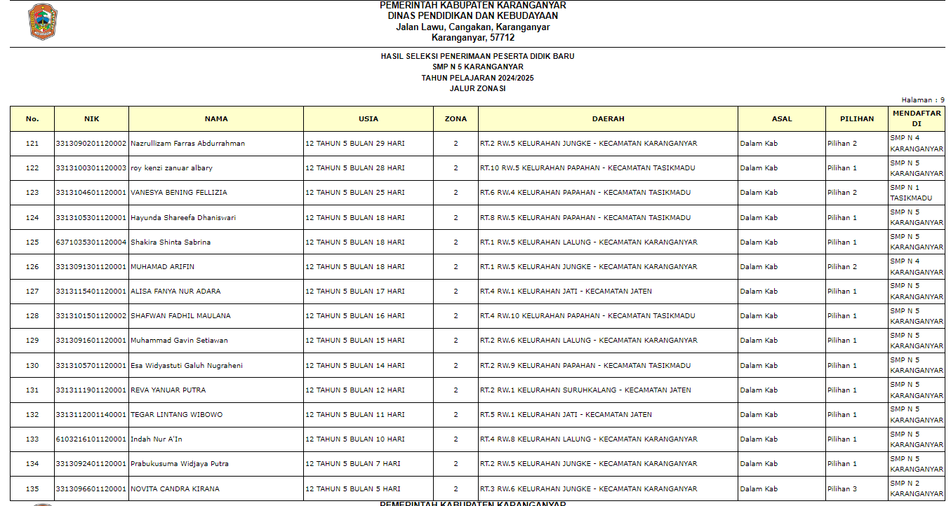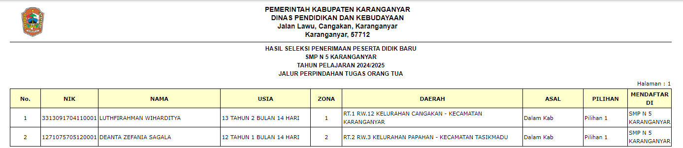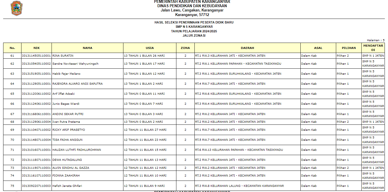 PENGUMUMAN PPDB SMP N 5 KARANGANYAR TAHUN 2024/2025
