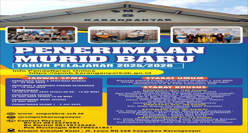 INFO SPMB (Sistem Penerimaan Murid Baru) SMP NEGERI 5 KARANGANYAR TAHUN 2025/2026